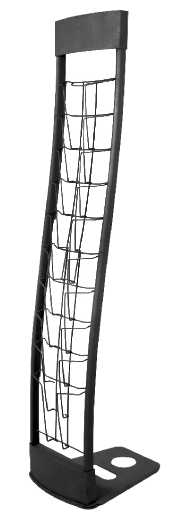 • Single-sided • For A4 magazines, brochures, booklets & leaflets • 10 Pockets • Black powder coated finish • Additional area for logo or graphic (optional extra £10) • Carry bag included